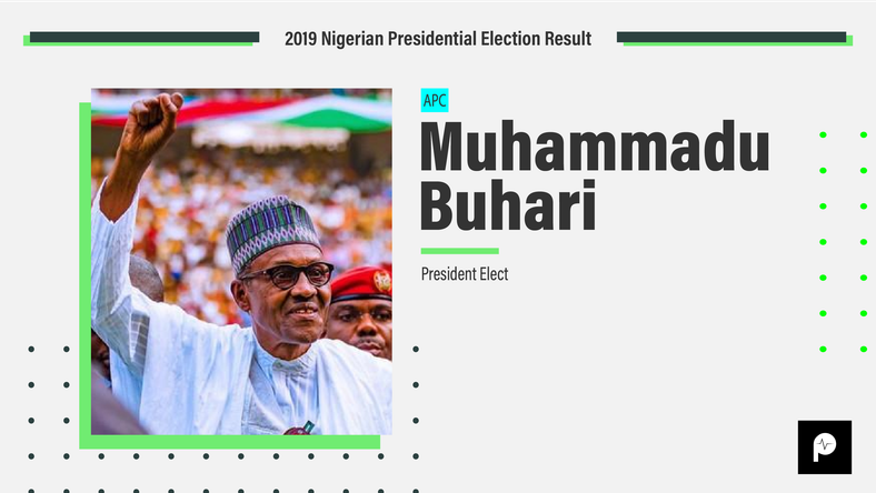 President Muhammadu Buhari has beaten Atiku Abubakar in a comprehensive victory in the 2019 presidential election, according to the official result announced by the Independent National Electoral Commission (INEC).