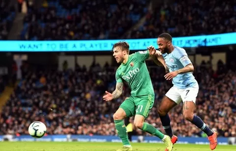 An offside controversy helped to launch Raheem Sterling's match-winning hat-trick as Manchester City went four points clear of Liverpool.